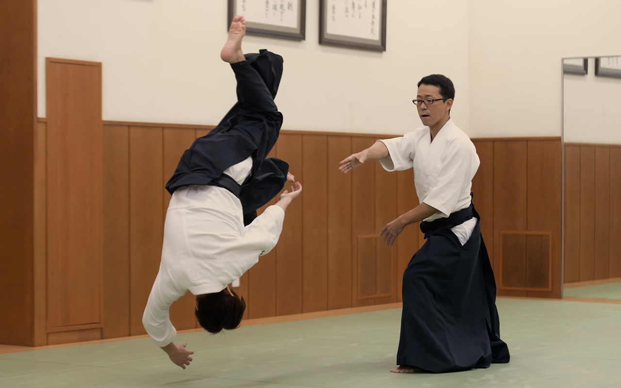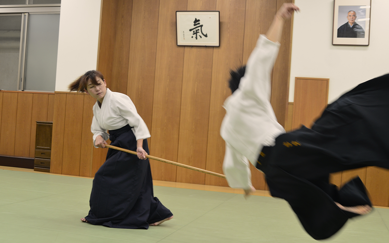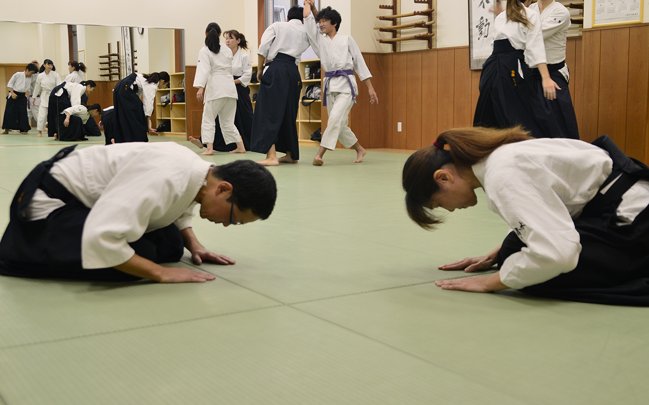 午前中は、武道の基本である足先まで氣が通う自然な姿勢から、心を静めること、心と身体を一つに使うことなど、往時の武士がそうであったように、人間本来の力を発揮した状態を体験しながら学びます。心のもち方によって、瞬間に身体に影響がある体感は誰もが驚くはず。また、日本武道の神髄である礼儀についてなども学びます。(道場)