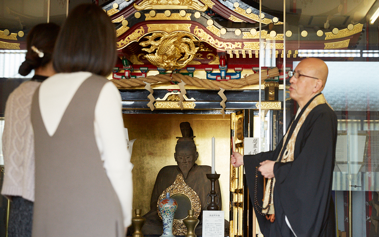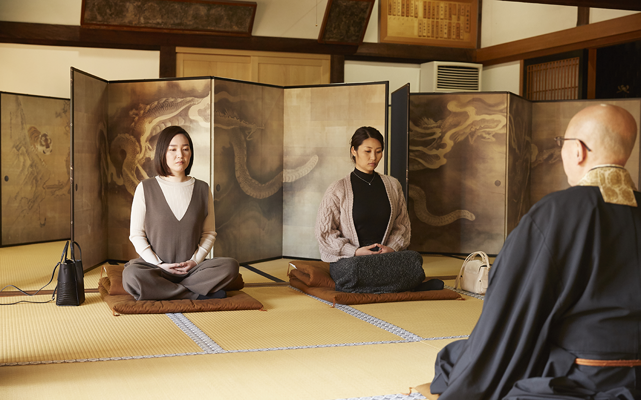 満昌寺では禅僧の指導のもと、梅湯茶礼から始まる本格的な坐禅を体験。武士はいかにして心を鎮めたのか、その感覚に触れていただきます。坐禅は15分を2セット行います。(満昌寺本堂)